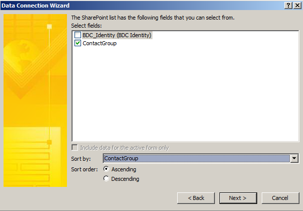Name the data connection (you will see this name displayed in InfoPath when connecting to the data source).